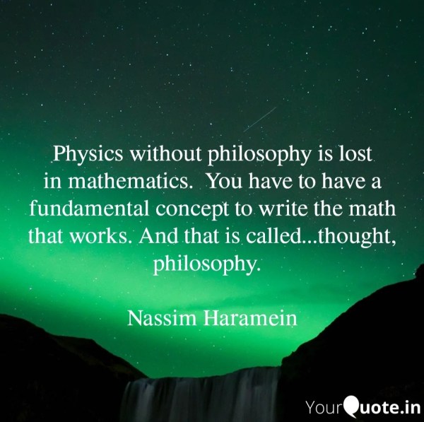 I came away from my meditation with this specific thought in my mind, “the mysterium, the mythology, theology cannot and never will be reduced down to simple calculation that is explained away by science. Science is the twin flame of spirit.” Little did I know only an hour or so later as I continued my study about physics that I would come across a quote by Nassim Haramein, a unified physics researcher and scientist. He said, “Physics without philosophy is lost in mathematics. You have to have a fundamental concept to write the math that works. And that is called thought, philosophy.”
